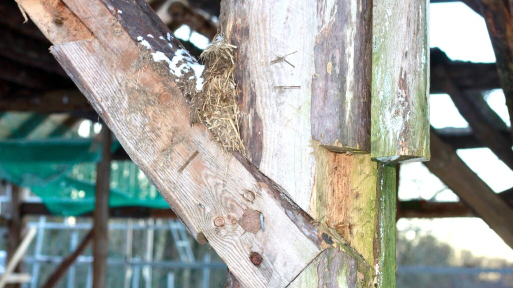 – Tradisjonshandverk og gjenbruk er inn i tida, og då er det tøft at me kan gjenbruka ei heil løe, så å seia slik som den var. Materiala til løa blei hogde i 1934/1935, og 90 år seinare står den på Hjelmeland. Klimaavtrykket frå slike prosjekt er svært lågt, konstaterer Leif Harald.