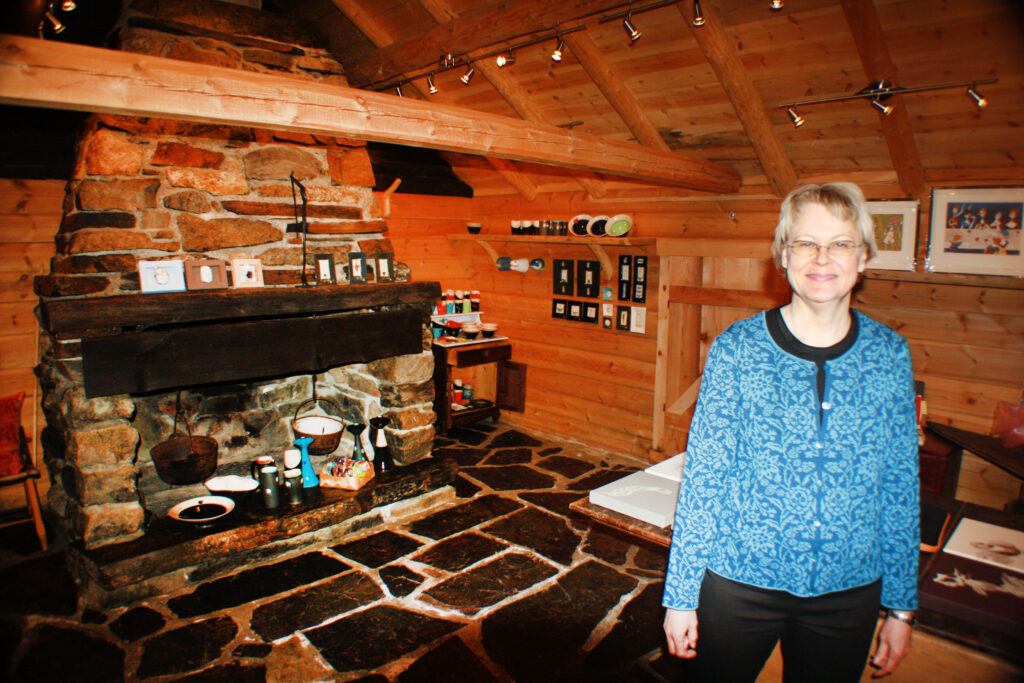 – Eldhuset vart seinare berre brukt til familiesamkomer, men sist vinter fekk eg lyst til å gjera eldhuset om til eit kunstgalleri. Utstoppa dyrehovud og antikvitetar vart flytta inn i løa, og eg byrja å tilpassa eldhuset innandørs, fortel Hanne Sundbø, som har brukt våren på å gje den 24 kvadratmeter store bygningen eit ansiktsløft av dimensjonar.
