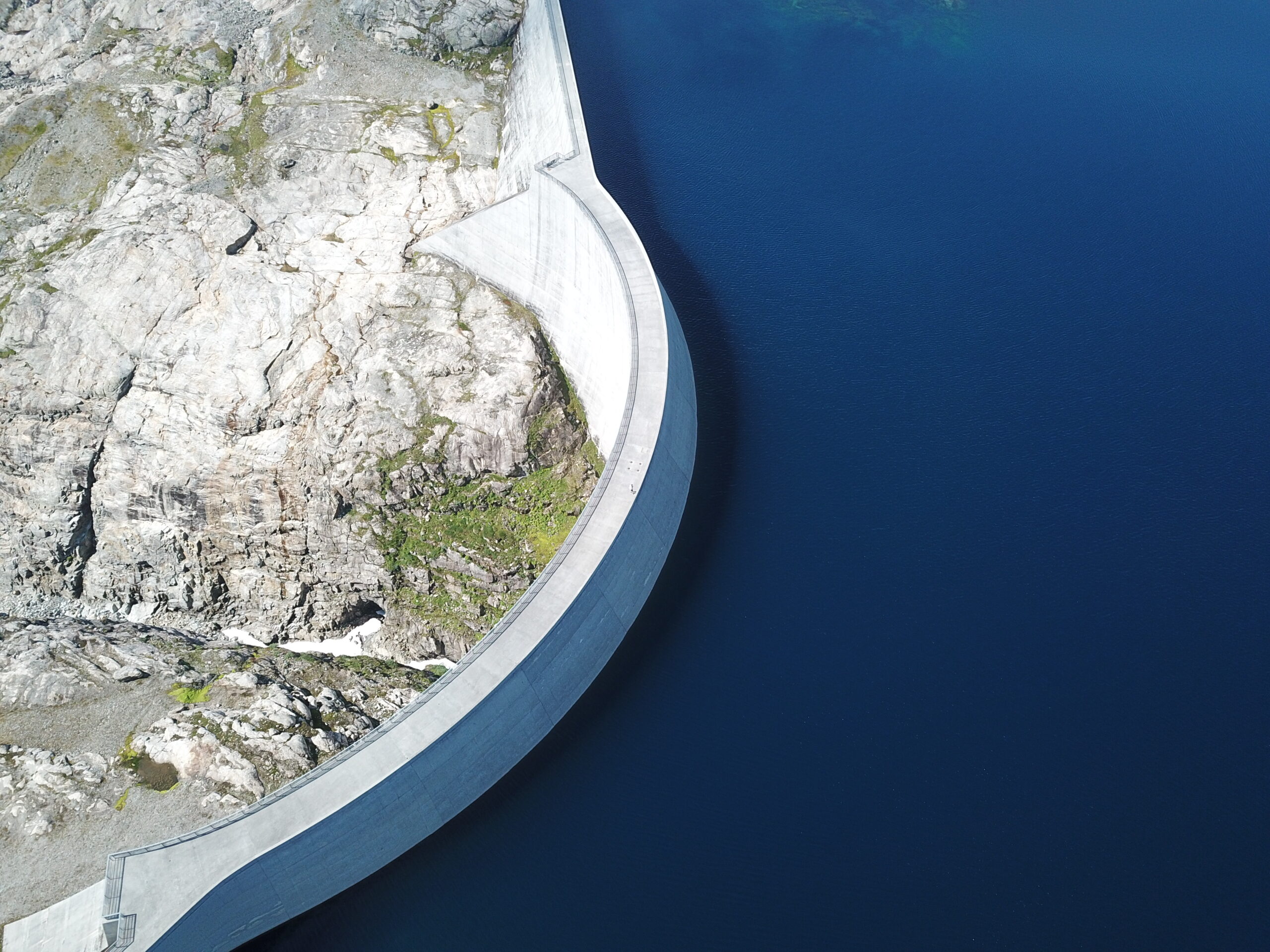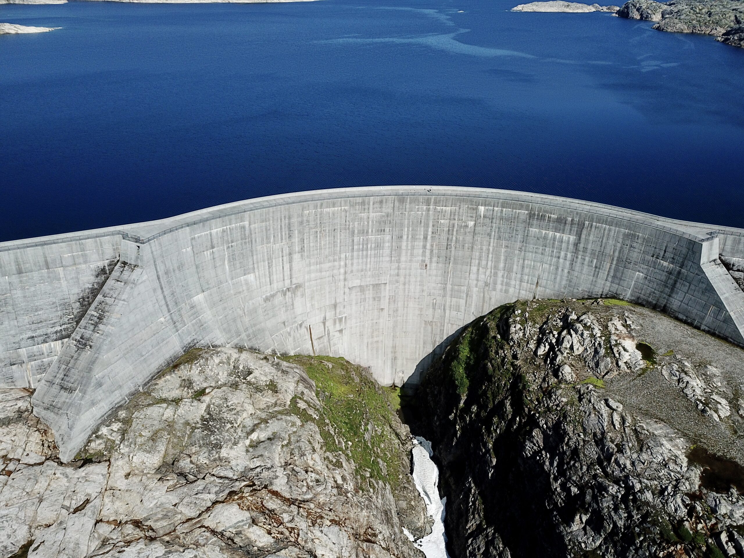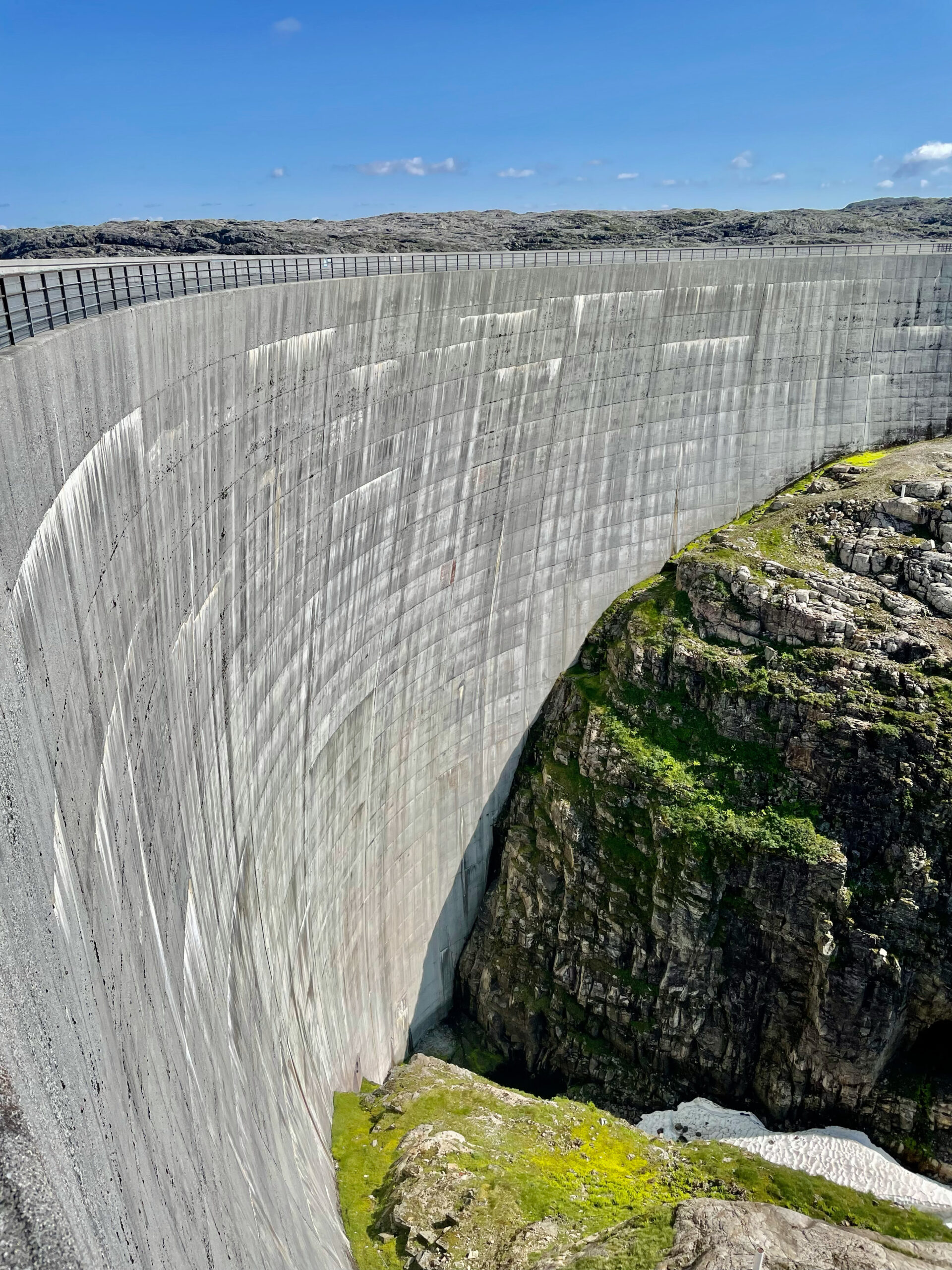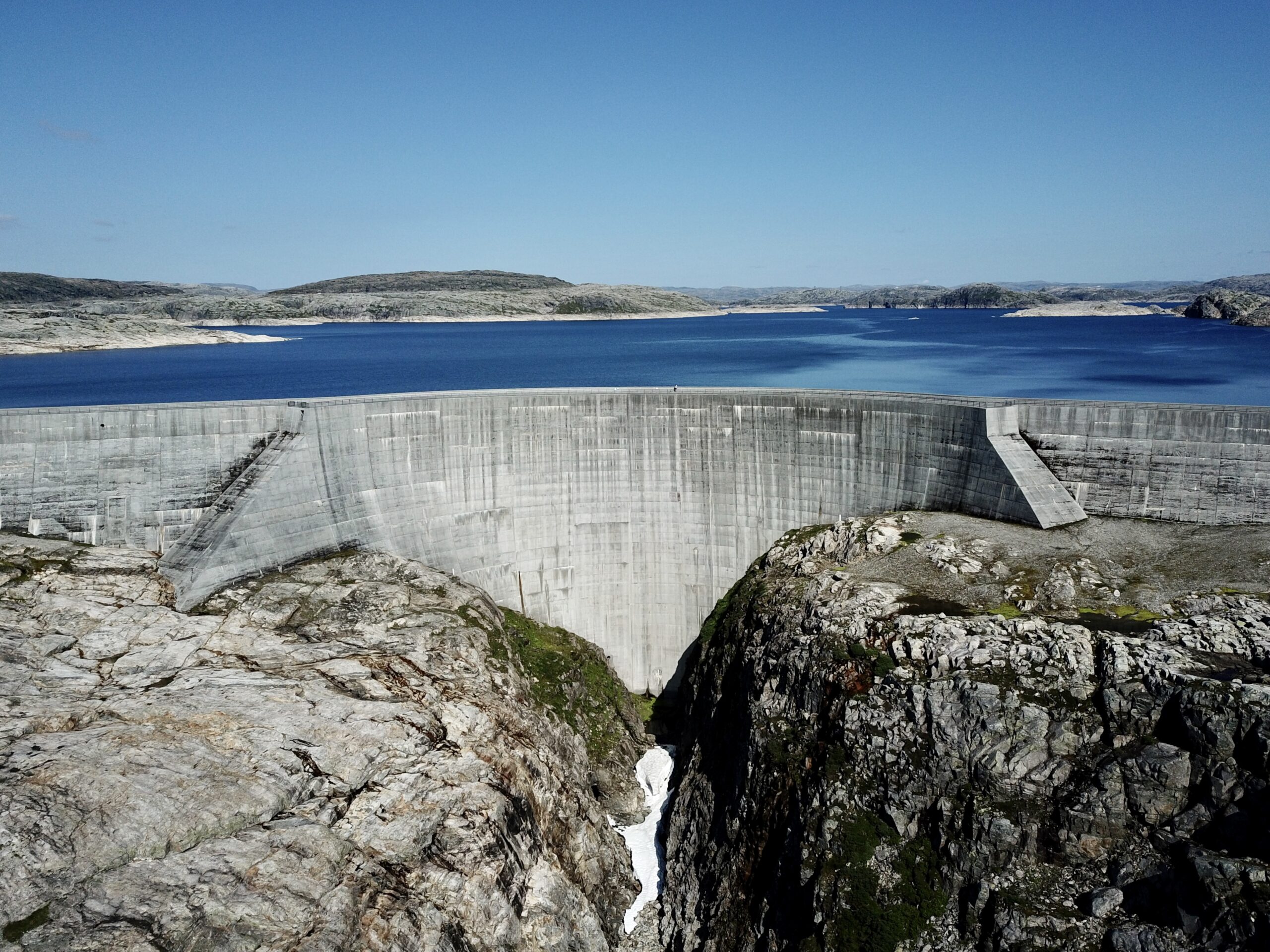 Førrevassdammen (bygd i perioden 1982-1986) er éin av mange dammar som demmer opp Blåsjø, det største kraftmagasinet i Noreg.