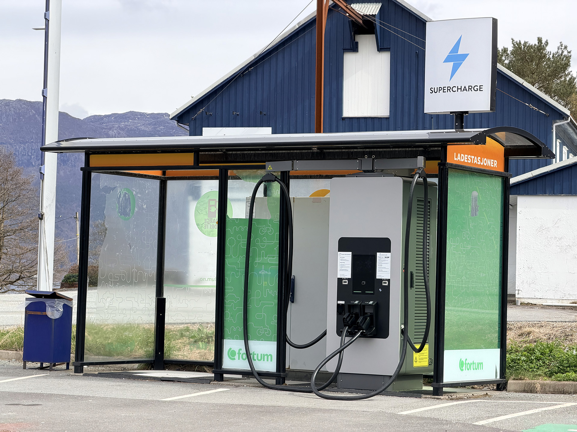 Betal med bankkort eller Supercharge-appen (App Store / Google Play).